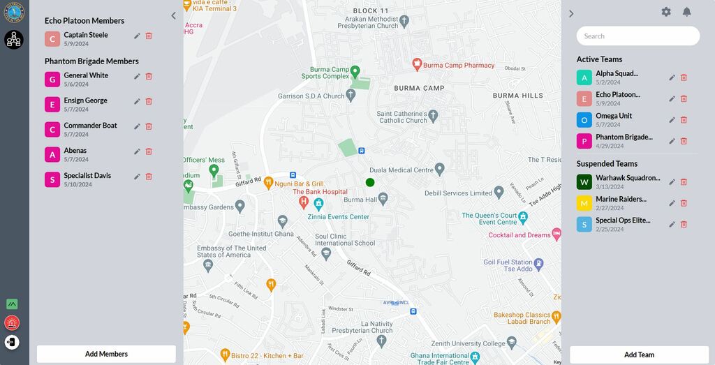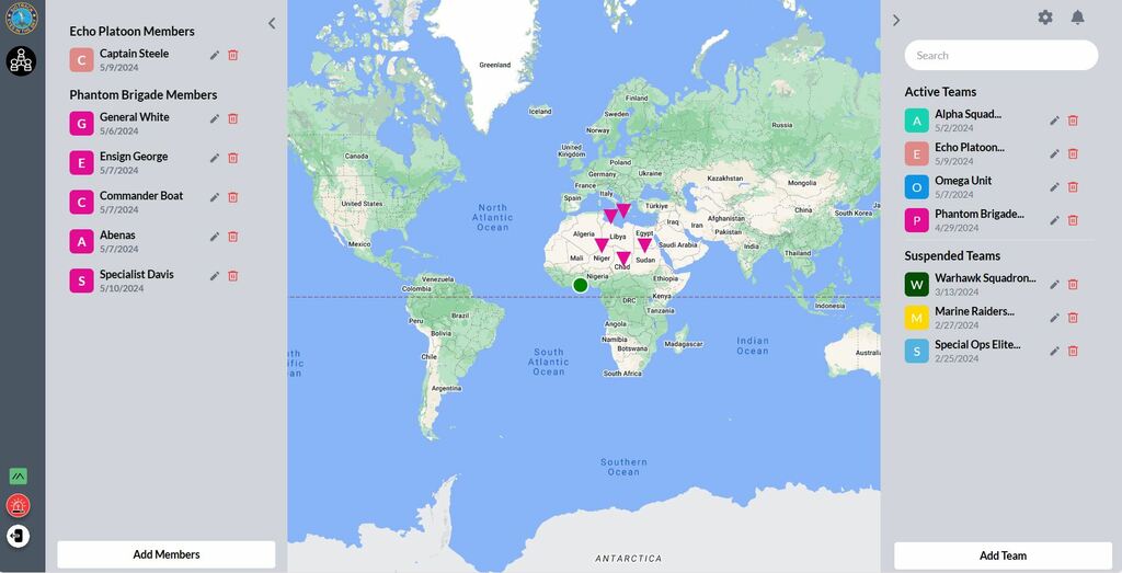 View Each Team Member as a Marker on the Map:Operatives can easily pinpoint the location of each team member by viewing them as distinct markers on the map. Individual colors are assigned to differentiate between team members, allowing for quick identification and tracking in real-time.